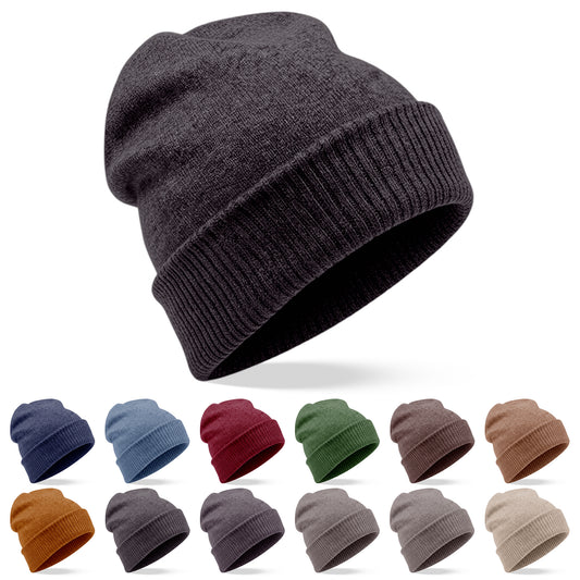 Kaschmir Mütze Beanie glatt mit geripptem Umschlag