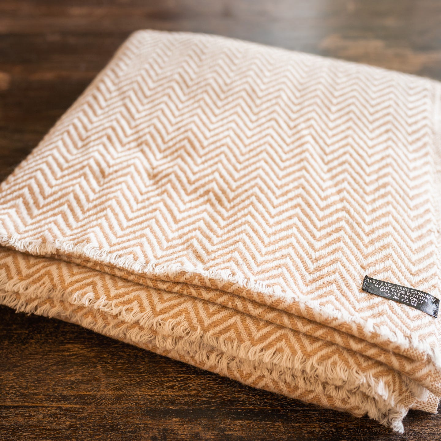 Kaschmirdecke braun mit großem Fischgrätenmuster