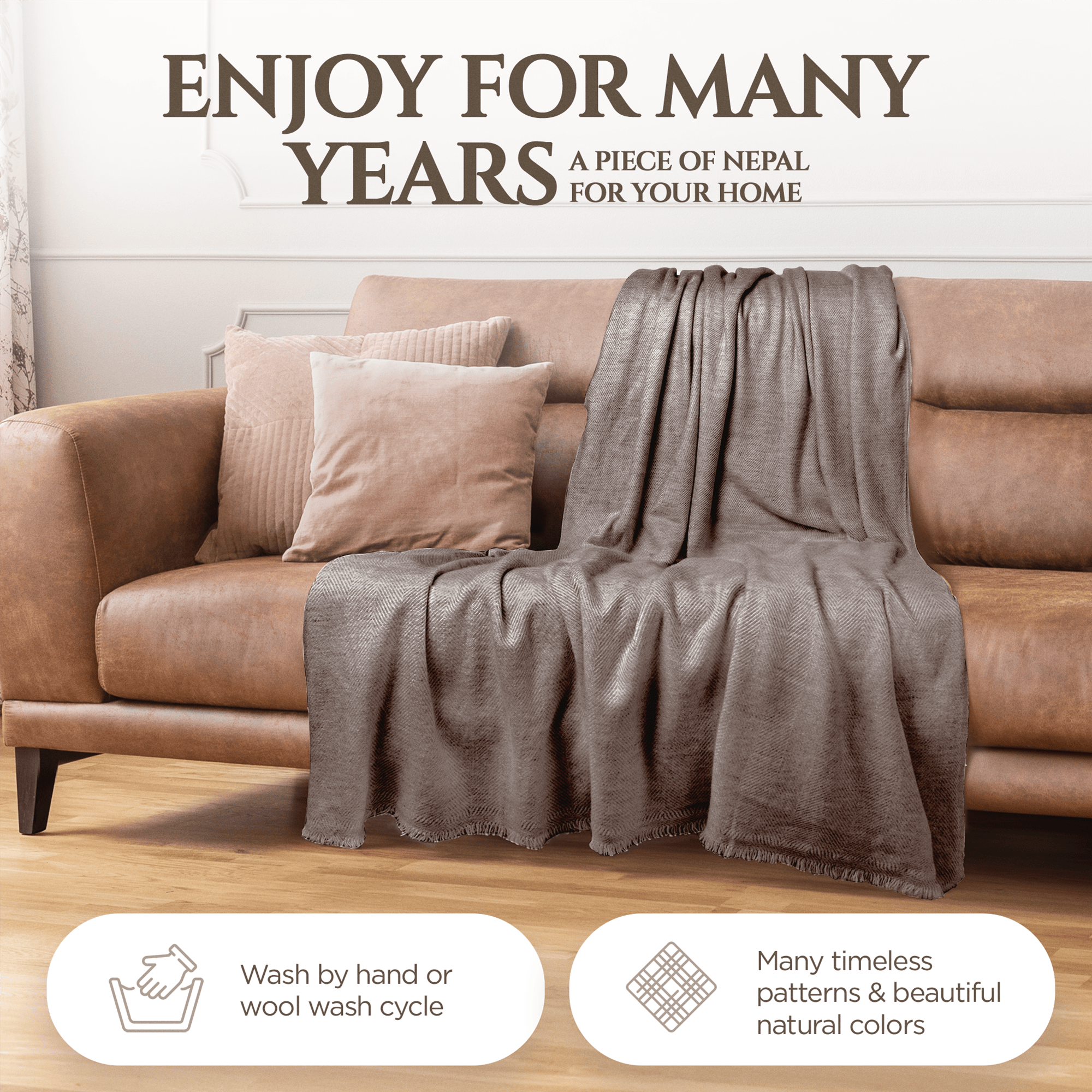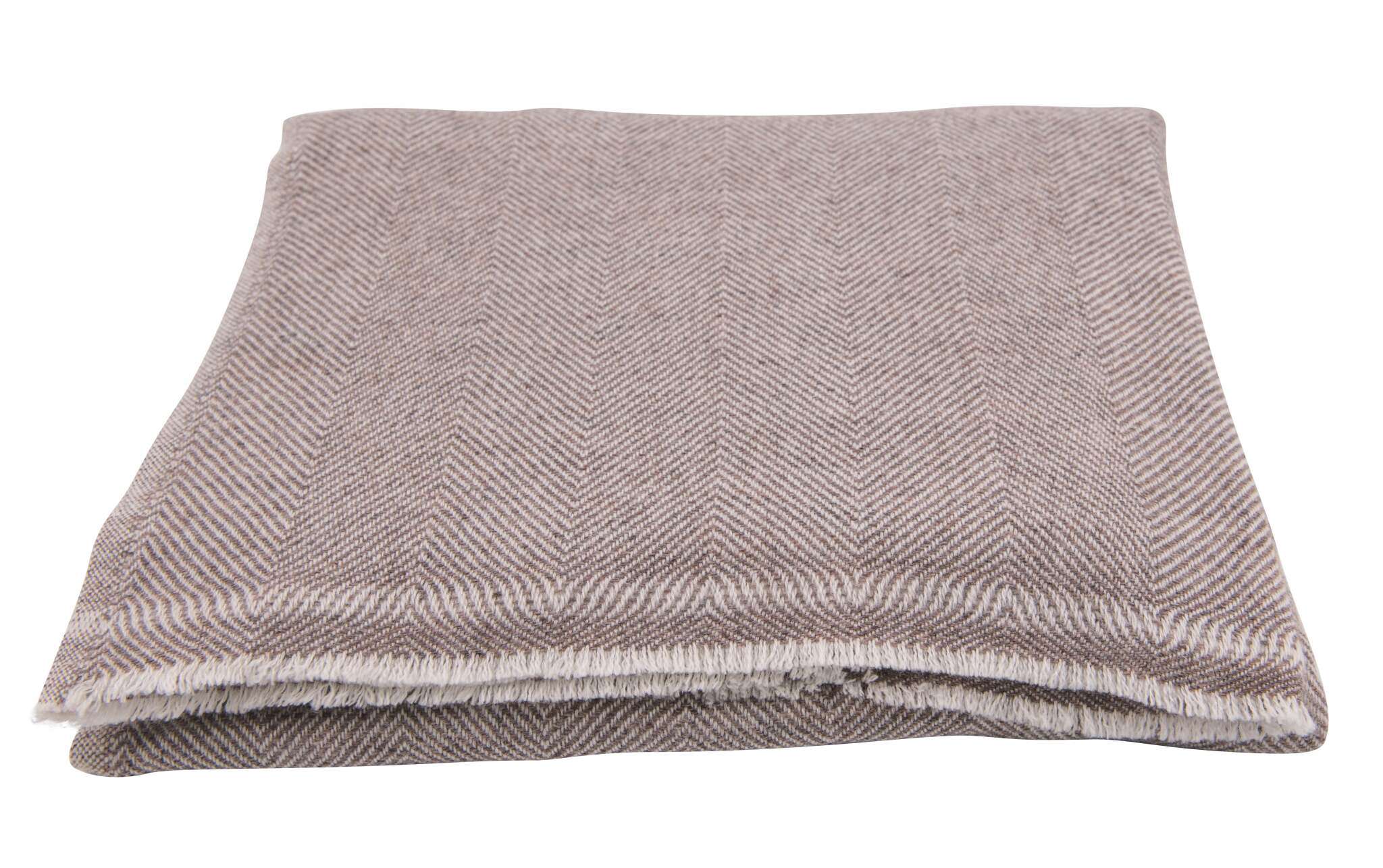 Kaschmirdecke graubraun mit feinem Fischgrätenmuster