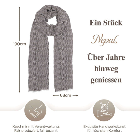 Unsere Kaschmirprodukte stammen aus der atemberaubenden Himalaya-Region Nepals. Dort, in den majestätischen Bergen, finden Sie die Heimat der Kaschmirziegen, die eine der kostbarsten und weichsten Fasern der Welt liefern - Kaschmirwolle. Die traditionellen Techniken des Kaschmirhandwerks wurden über Generationen hinweg von lokalen Handwerkern in Nepal weitergegeben, um die herausragende Qualität unserer Produkte zu gewährleisten.